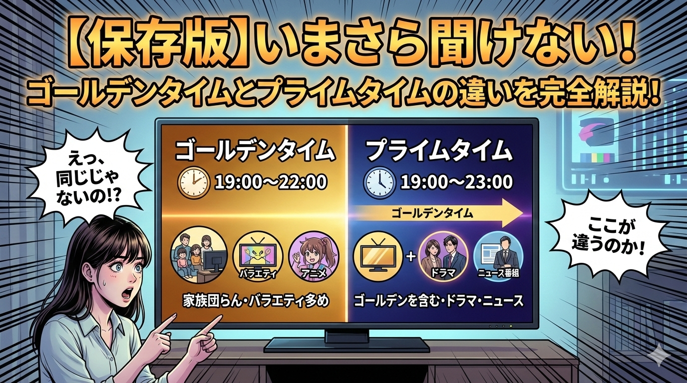 この記事では、ゴールデンタイムとプライムタイムの違い、定義、広告価値、テレビ局の戦略との関係性について徹底解説する。