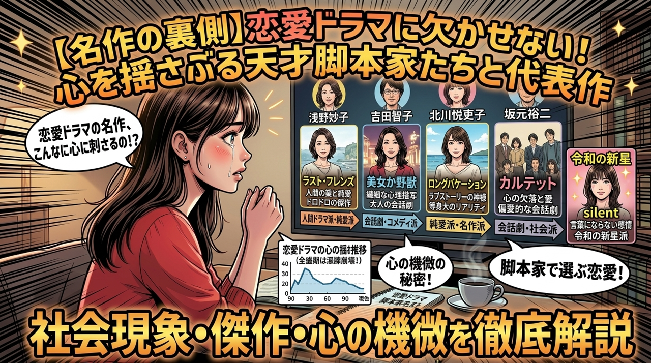 次に観る恋愛ドラマを探すときは、ぜひ「脚本家」の名前を一番最初にチェックしてみてほしい。きっと、あなたの人生に深く刻まれる、運命の「名作」と出会えるはずである。